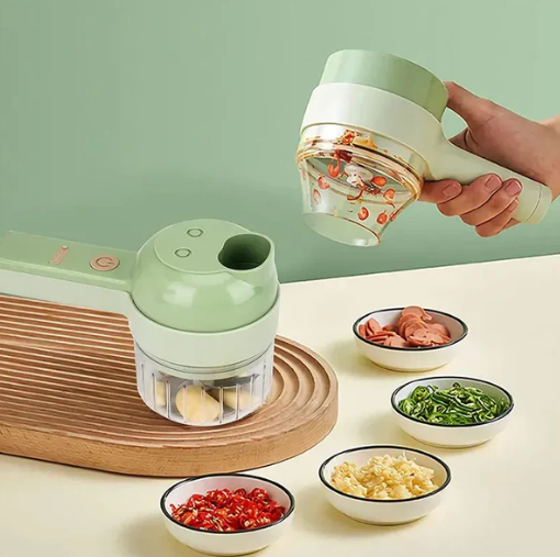 The 4-in-1 Electric Kitchen Assistant – Chop, Slice, Grate in Seconds, No Knife Skills Needed.
